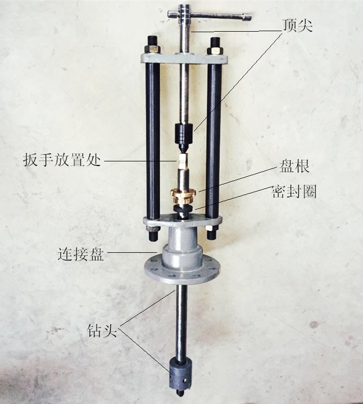 3,開孔過程中,如突然阻力增大,頂尖可反向旋轉(zhuǎn)兩周,提起鉆桿后,再繼續(xù)搬動(dòng)扳手。