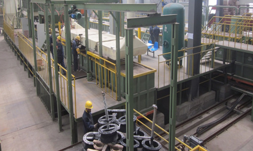 采用循環(huán)線,減少人為縮短澆注后管件在箱內冷卻時間,從澆注完到落砂出件需3小時,(工藝要求1小時)確保力學性能。
