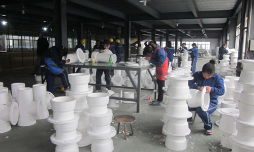 采用全封閉半自動成型機,直管部分整體成型,避免了半模成型膜片粘接產生橢圓。帶支管類管件支管部分整體成型。